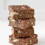 After two weeks of eating these compulsively (I keep them in small chunks in my freezer and eat them straight from there!), it finally occurred to me: these are basically like refrigerator cookies. You know the ones - oats, peanut butter, chocolate, etc. Plop them in a lump on a sheet of wax paper and after they cool: refrigerator cookies! I used to make those a lot as a kid. These are absolutely similar, except I ground up the oats and pressed everything into a pan - and swapped some ingredients. Refrigerator cookies for adults? You could *maybe* even pass these off as granola-ish bars. Maybe. Don't hold me to that.