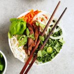 These noodle bowls are a variation on what has quickly become our favorite meal these days. Cold rice noodles, veg, peanut sauce, herbs, and (this time) STEAK. Oh man. I honestly think I could eat a variation of this meal literally every meal of the day for months and months (and I basically did just that for the three months I was in Vietnam!). Feel free to throw in your meat (or non-meat!) of choice! Chicken or pork would work really well here (just make sure to cook both of those all the way through), and if you're a tofu master I think you could make a TASTY tasty tofu situation here.