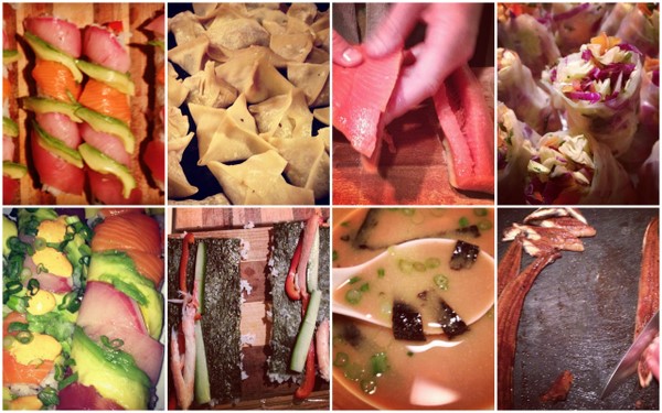 Last night we went to a party. Probably one of the most delicious parties I've ever been to. You may come back from parties with a hangover from drinking too much, but I came back from this party with a hangover from eating too much sushi. Wait... too much sushi? That isn't even possible. It. Was. AWESOME. If you know me at all, you know that sushi (well, raw fish in general) is one of my favorite foods!