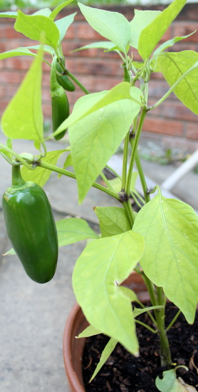 I used our one little (well, not so little) jalapeño the other day, and there are five more growing quickly! Can somebody say "jalapeño poppers"?