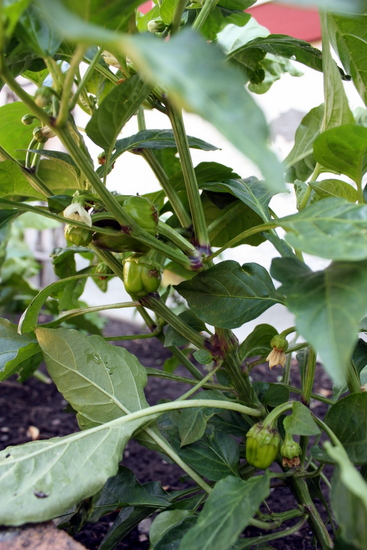 Our bell peppers are starting to produce also! Not quite ready for harvesting yet, but each plant has 5-8 little peppers on it that are growing alarmingly fast. Woohoo!