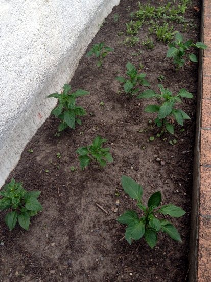 - Peppers: I finally stopped neglecting these babies and stuck them out front, where there is more sun, and they will have more room. They are also pretty close to the house, so the warmth from the house should help! They're getting bigger already and look like they're about to produce something!