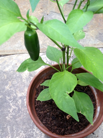 - Jalapeños: MY FAVORITE PLANT! I'm so excited about our (one) little jalapeño! I'm hoping this plant will start producing a lot more, but right now I'm just so excited to see our one growing! I think this plant might enjoy a bit more space, so I'm considering moving it to a larger container.