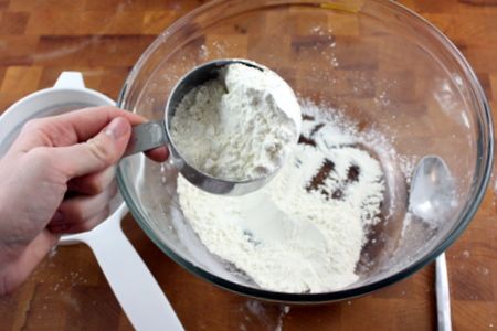 Fill the rest of the measuring cup with normal flour,