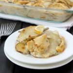 - Tuck the lemon sliced in along the top, cover with foil, and bake for 50-60 minutes, or until your potatoes are tender. Remove the foil, and broil until the top of the casserole is golden.