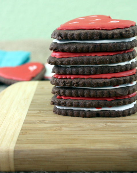 These cookies are the closest I could find to a recipe I loved to make growing up. I bought a cheap Hershey's Recipes cookbook and don't think I made anything except cookies very similar to these - and they were AWESOME. Always. I love them. I'm not huge on sugar cookies (snicker-doodles are a totally separate ball game), so this soft, chocolate version is perfect! Annie's Eats recently popped up on Pinterest with the cutest designs with royal icing - a land I had yet to journey into. I've always wanted to make cute cookies, but never felt artsy enough to give it a go. This week, I got bold and got to it.