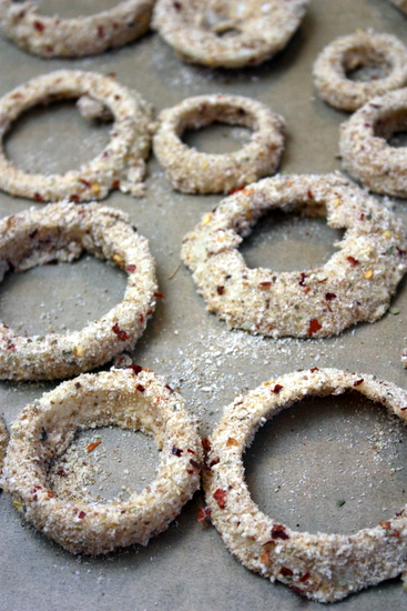 Onion rings!! I never make them at home due to lack of desire to deep fat fry--but these baked onion rings look perfect. Now I just have to make some lamb burgers and a gigantic tomato salad to go with them. 🙂
