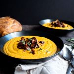Butternut Squash Sweet Potato Bisque with Buttered Chanterelles