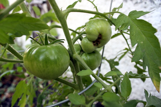 Tomatoes are going crazy. They aren't necessarily ripening yet, but when they do we'll be eating caprese salad morning, noon, and night! Our cherry tomato plant is the only one that has ripened at all, producing 6-10 ripe tomatoes each week. It is FLOURISHING though - growing like a weed! The others all have green tomatoes on them, and we're anxiously awaiting their arrival to tomato-hood.