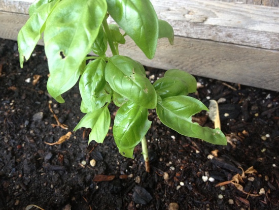 - Basil: We should have basil coming out of our ears soon. I have four plants of one variety (started from seed) that are going very well, except for the fact that something likes to munch on the lower leaves. Hmph. I have another variety that I bought as tiny sprouts, then promptly picked too much from... I've been nursing two plants from that batch back to life, and they are finally gaining steam! I also planted five more plants out front, but they have yet to even sprout yet. I'm thinking I should have started them in small containers first, but I'll give them another week to make an appearance!