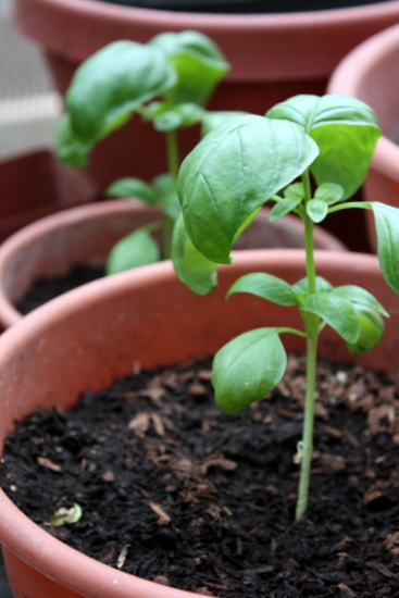 Spinach, Beets, Arugula - Basil: I had a starter from the nursery, which is struggling, but those that I started from seed are flourishing! I thinned them down to four in one pot, then separated them each into their own pot. I will probably soon plant three of those outside in the ground. I can't wait to have an overabundance of basil (pesto, anyone?).