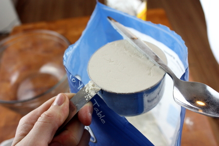 Fill the rest of the measuring cup with normal flour,