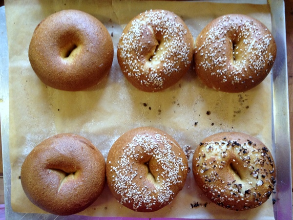 I've long stayed away from making bagels, simply because they require some pre-planning and time commitment. The first day has a few rises, and shaping of the dough. The second day is the boiling and baking, not really much effort but definitely planning ahead! Luckily, if you don't have two free days in a row, you can wait another day or two to do the baking.