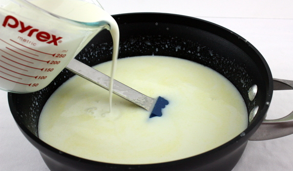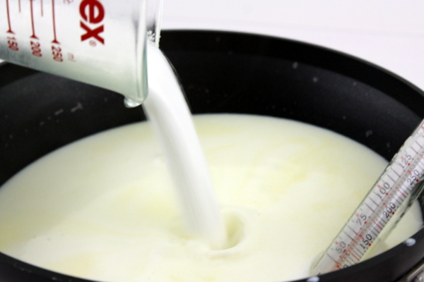 - Heat the milk to 180 F, stirring with a spatula so as not to burn it.