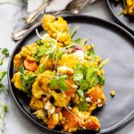 I've been making this salad all summer by using whatever vegetables I have on hand. I've used beets, broccoli, turnips, and others in place of the cauliflower and carrots! My favorite is definitely to include cauliflower roasted with turmeric, which then spreads to most of the salad and gives it that bright yellow hue. Also: goat cheese. Can't skip it (or, I suppose you COULD sub a different tangy cheese). The reason I love this salad so much though, lies in the sorghum. It's cooked in the mushroom broth, which gives it such umami, and really makes this a one-pot meal. I eat this as a complete meal and feel awesome about it.
