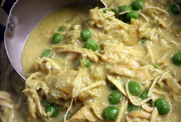 - Combine coconut milk, onion, garlic, ginger, curry, coriander, cumin, and 1 tablespoon of salt in your slow cooker. Mix together, then add the chicken. Position the chicken so it is covered with the sauce.