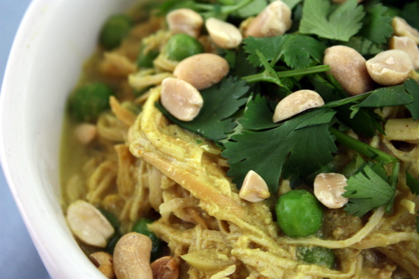 - Serve over rice, and garnish with peanuts and fresh cilantro.
