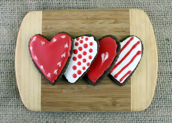 These cookies are the closest I could find to a recipe I loved to make growing up. I bought a cheap Hershey's Recipes cookbook and don't think I made anything except cookies very similar to these - and they were AWESOME. Always. I love them. I'm not huge on sugar cookies (snicker-doodles are a totally separate ball game), so this soft, chocolate version is perfect! Annie's Eats recently popped up on Pinterest with the cutest designs with royal icing - a land I had yet to journey into. I've always wanted to make cute cookies, but never felt artsy enough to give it a go. This week, I got bold and got to it.