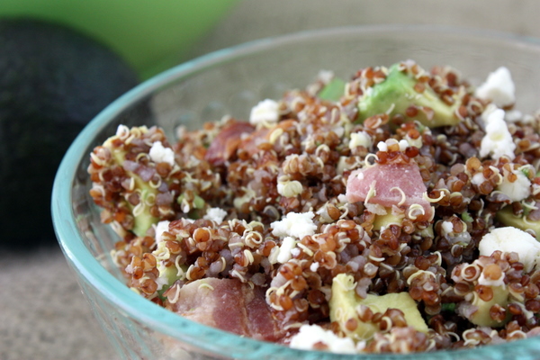 This is the kind of food I consider to be, besides delicious, totally appropriate to eat in mass quantities. Sure, it has bacon and cheese. Those two might be considered bad for your health, depending on who you ask. Ok probably with anyone you ask. BUT: Quinoa and avocado? Come on - you can't tout those as unhealthy. With those facts in mind, this salad (it is a SALAD after all, right?) has been deemed healthy in my household. Healthy enough to eat out of the serving bowl all afternoon long.
